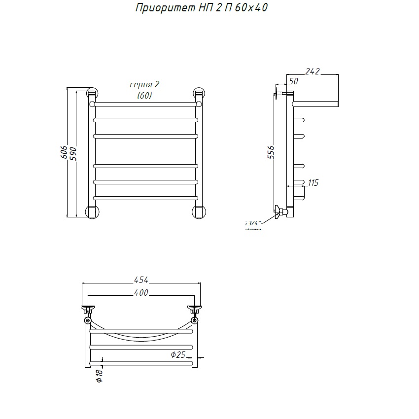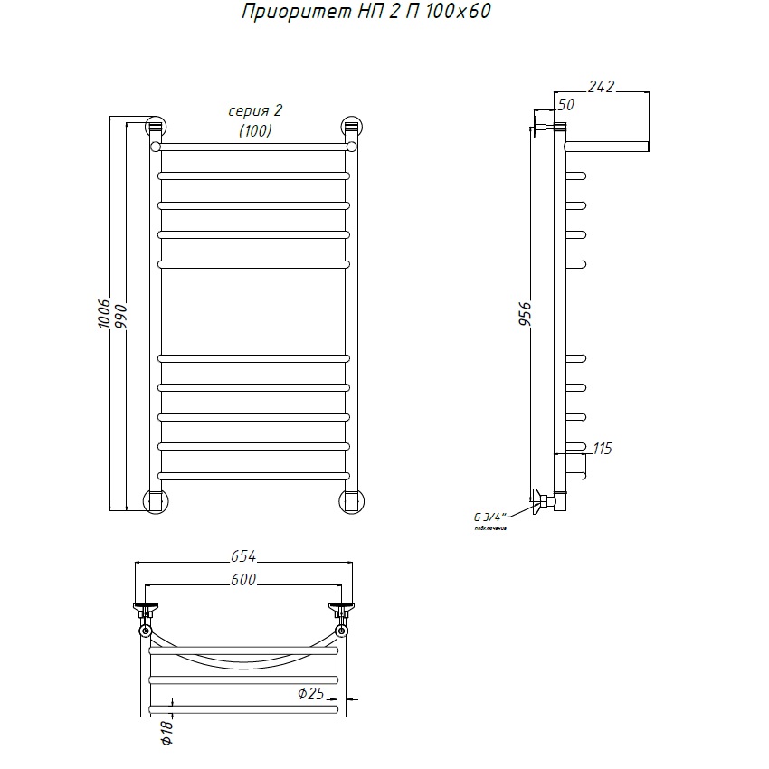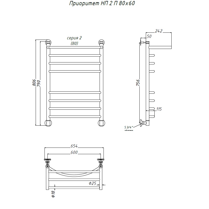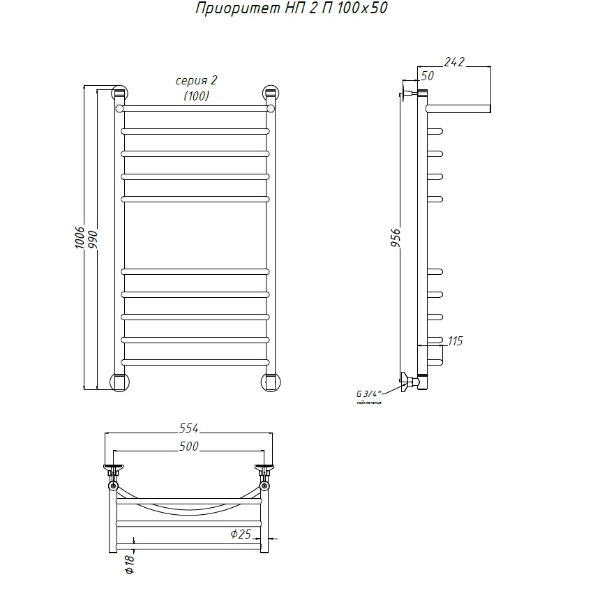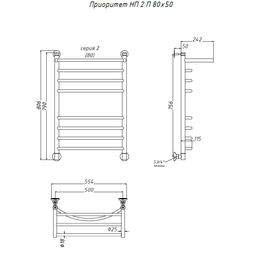 Водяной полотенцесушитель «ПРИОРИТЕТ» НП серия 2 с полкой