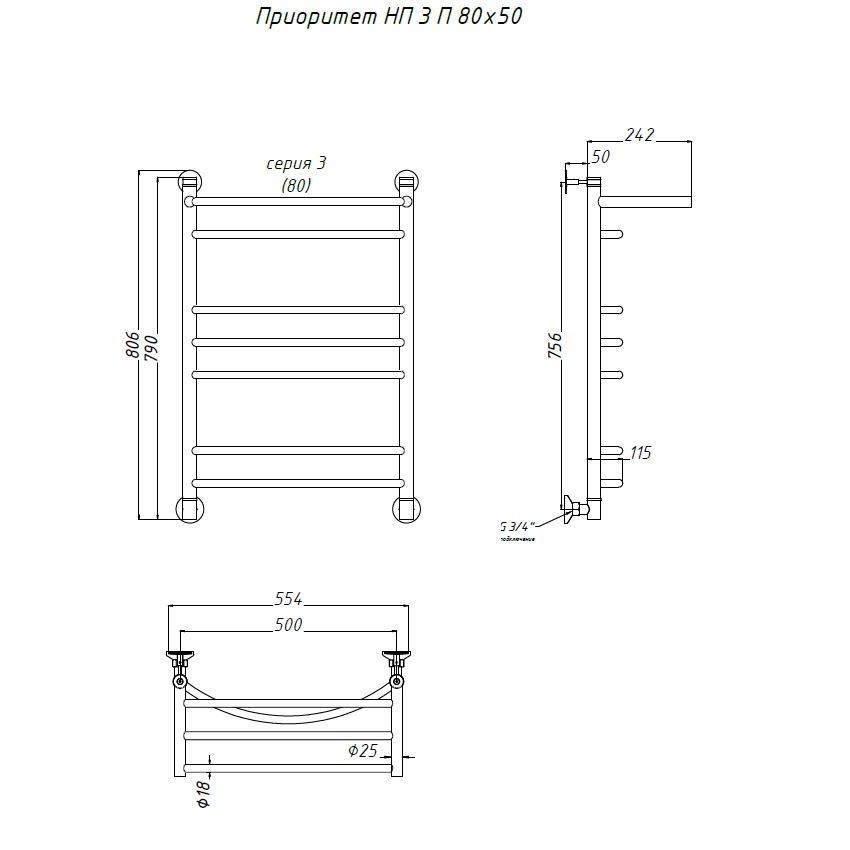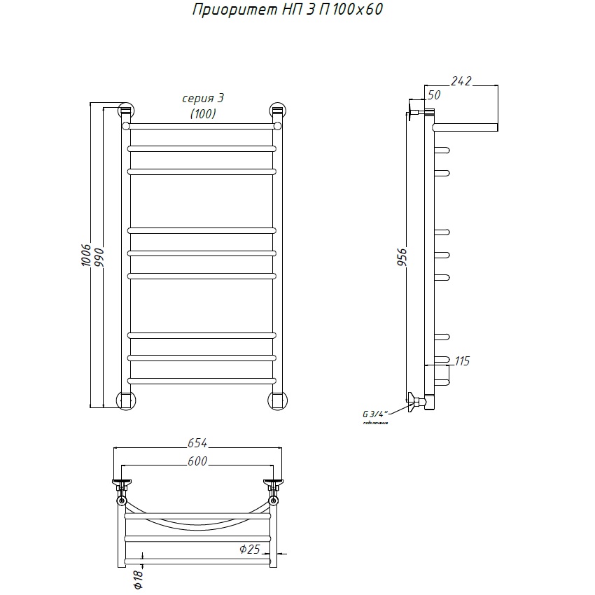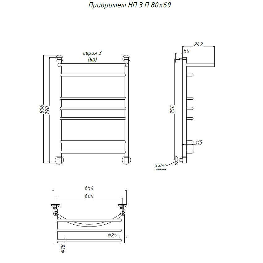Водяной полотенцесушитель «ПРИОРИТЕТ» НП серия 3 с полкой