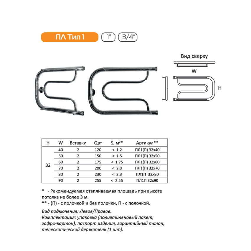 Водяной полотенцесушитель Серия ПЛ Тип 1П