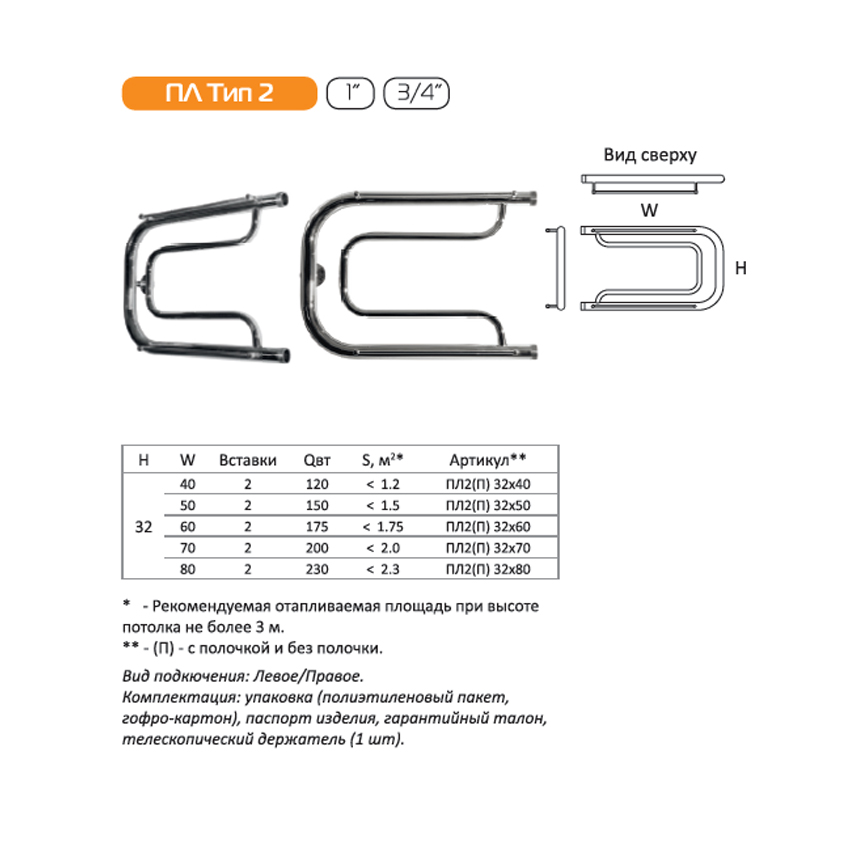 П-образная модель. В центре находится змеевик с прямоугольным изгибом. На коллекторе расположены две дополнительные перекладины небольшого размера. Вариант с внешней резьбой.