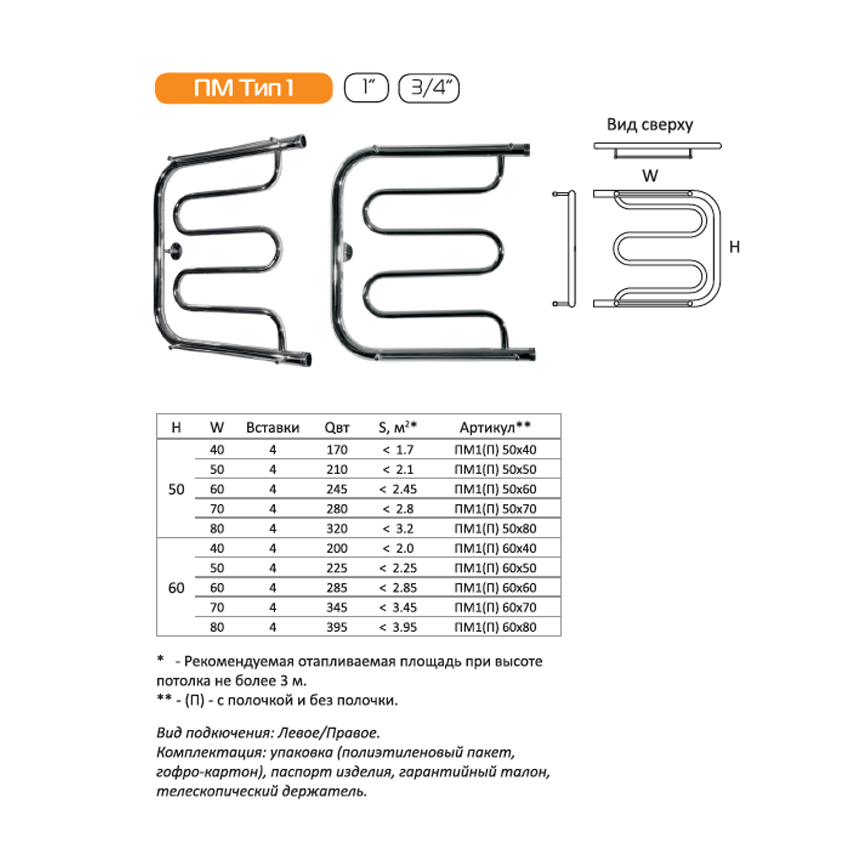 Водяной полотенцесушитель Серия ПМ Тип 1П