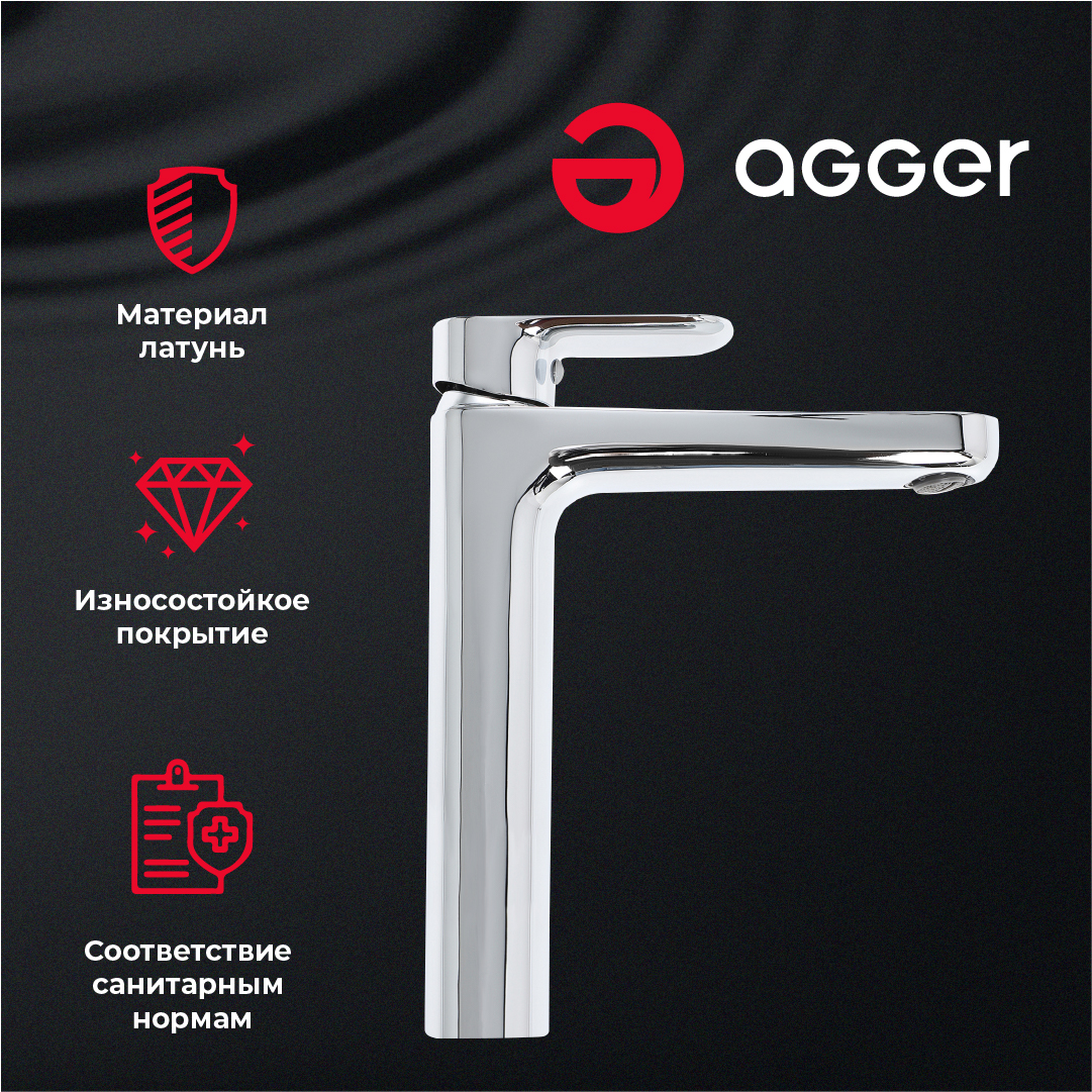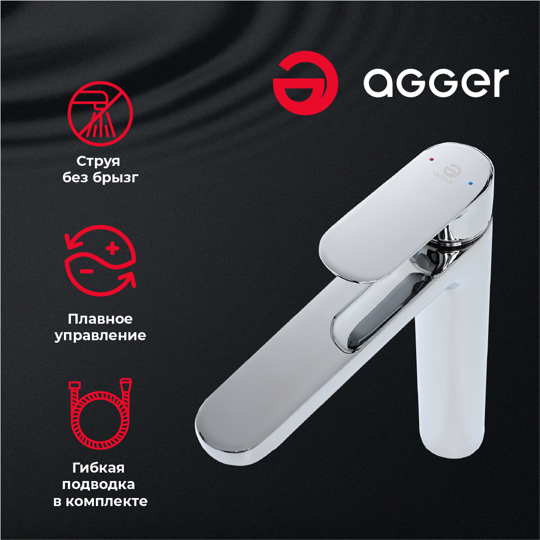 Однозахватный смеситель для раковины Agger Gorgeous украсит интерьер современной ванной комнаты. Корпус изделия изготовлен из высококачественной латуни, не подверженной коррозии от контакта с водой. Фирменный картридж Agger обеспечит плавное управление напором и температурой воды. Хромированное покрытие, за которым очень просто ухаживать мягкой салфеткой, обеспечивает блеск на долгие годы. Встроенный аэратор экономит воду, обогащая её воздухом, делает струю мягкой и без брызг. Предназначен для накладных раковин.
