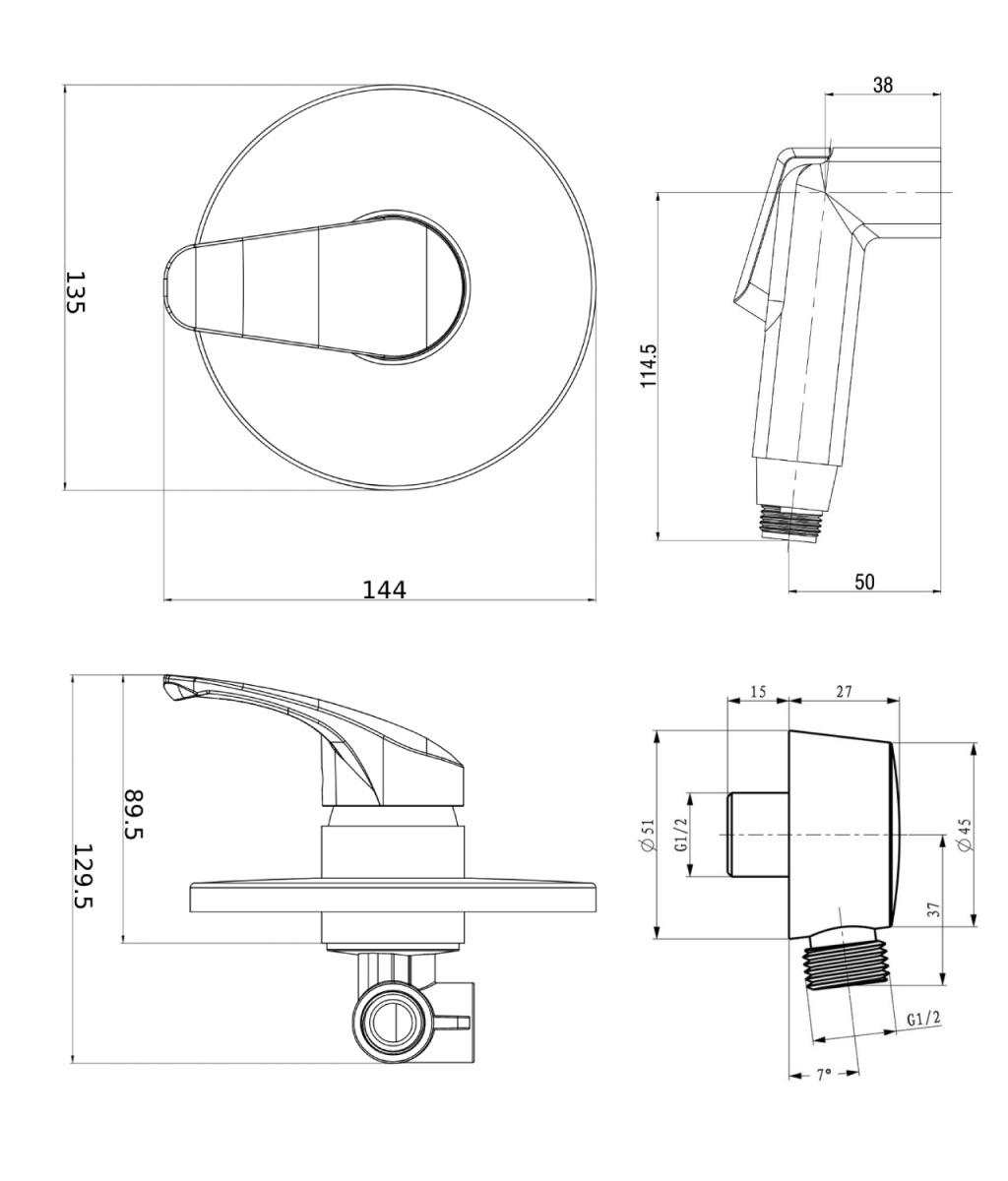 OneLife P01-888cr встраиваемый смеситель с гигиеническим душем, хром