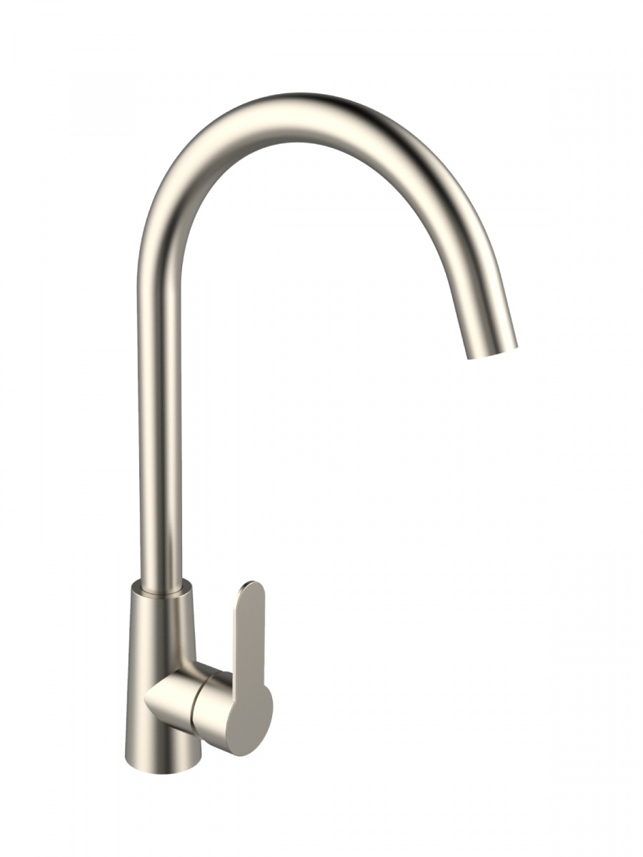 Однозахватный смеситель для кухни с поворотным изливом Agger Splendid - эргономичное решение для современной кухни. Выполнен из латунного сплава с повышенным содержанием меди. Фирменный картридж Agger обеспечит легкое управление напором и температурой воды. Покрытие в цвете матовый никель (вакуумное напыление), за которым очень просто ухаживать мягкой салфеткой, долговечно - сохраняет первозданный внешний вид на протяжении долгих лет. Аэратор экономит воду и, обогащая воду воздухом, делает струю мягкой и без брызг.