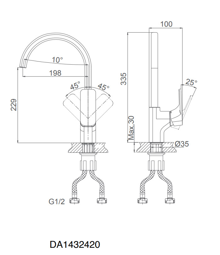 Смеситель для кухни D&K Berlin.DA1432420 с высоким поворотным изливом, хром Гарантия - 5 лет. Бесплатное сервисное обслуживание "D&K" - 10 лет.* Смесители немецкого бренда "D&K" производятся из латуни класса «А», что соответствует стандартам латуни HPB59-1, в РФ марка ЛЦ40С (ГОСТ 15527-2004) Толщина стенок смесителей «D&K» составляет 2,5 – 3,5 мм, Картридж D-38,5 мм. с высокопрочными пластинами из минерала Корунд (Al₂O₃) оксида алюминия. Низкий уровень шума: 17-19 дБ (сопоставим с шелестом листвы). Количество циклов открытия/закрытия - 500 000 Изделие тестируются под давлением воды и воздуха от 3 Атм до 10 Атм, на работоспособность комплектующих и качества сборки в соответствие стандартам. Высота до излива: 335 мм. Длина излива: 198 мм. Илив поворотный на 360° Пластиковый аэратор уменьшает расход воды. Креплление: Гайка с фиксирующими винтами Гибкая подводка на 1/2" - 40см. Высокое качество по доступной цене. Изделие имеет сертификат соответствия ГОСТ * - Бесплатное сервисное обслуживание "D&K" - 10 ле