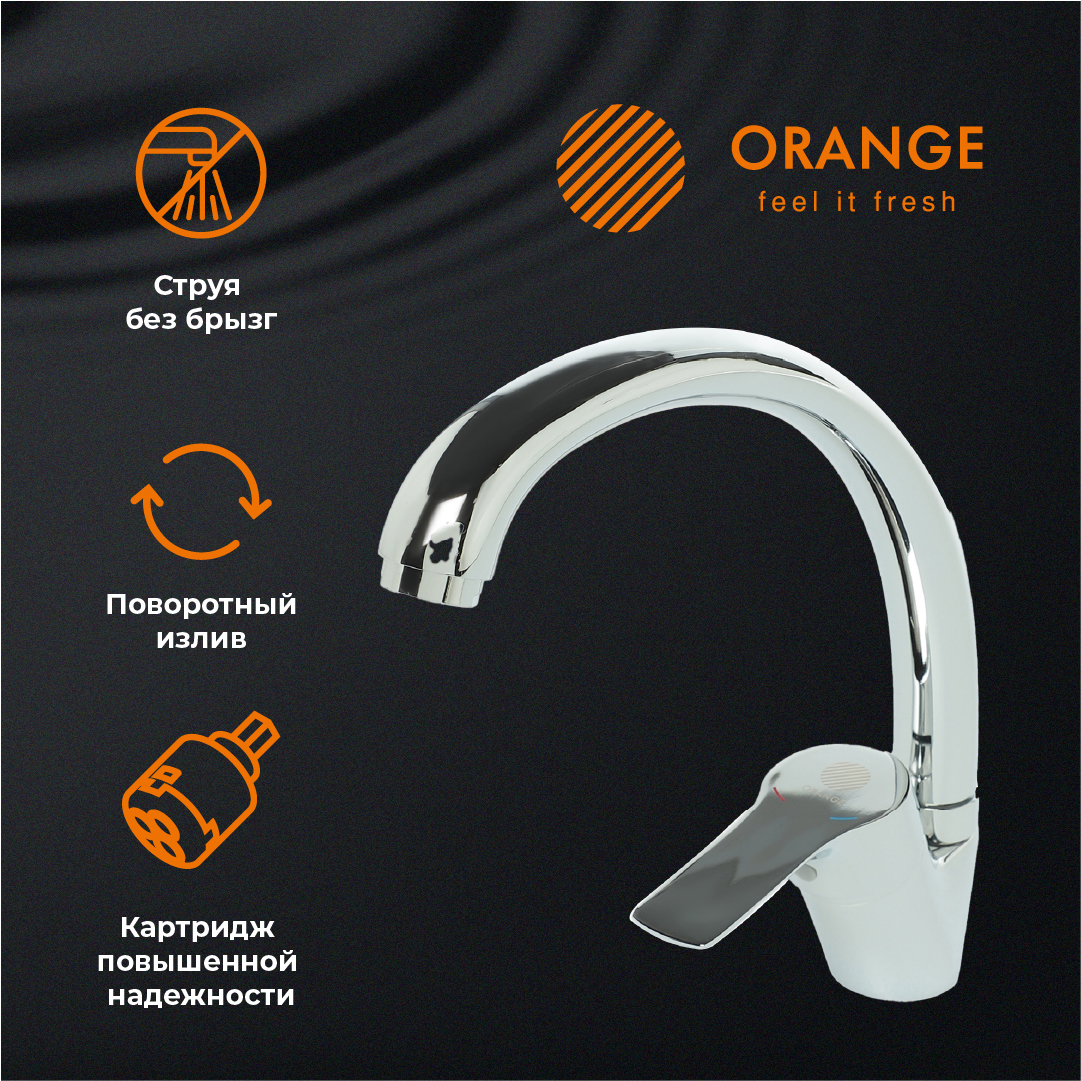 Однозахватный смеситель для кухни с поворотным изливом Orange Dia гармонично дополнит современный или традиционный интерьер. Благодаря фирменному картриджу Orange управление напором и температурой воды легкое и плавное. Корпус выполнен из высококачественной латуни, не подверженной коррозии от длительного контакта с водой. Хромированное покрытие, за которым очень просто ухаживать мягкой салфеткой, обеспечивает блеск на долгие годы. Встроенный аэратор экономит воду и, обогащая струю воздухом, делает её мягкой и без брызг.