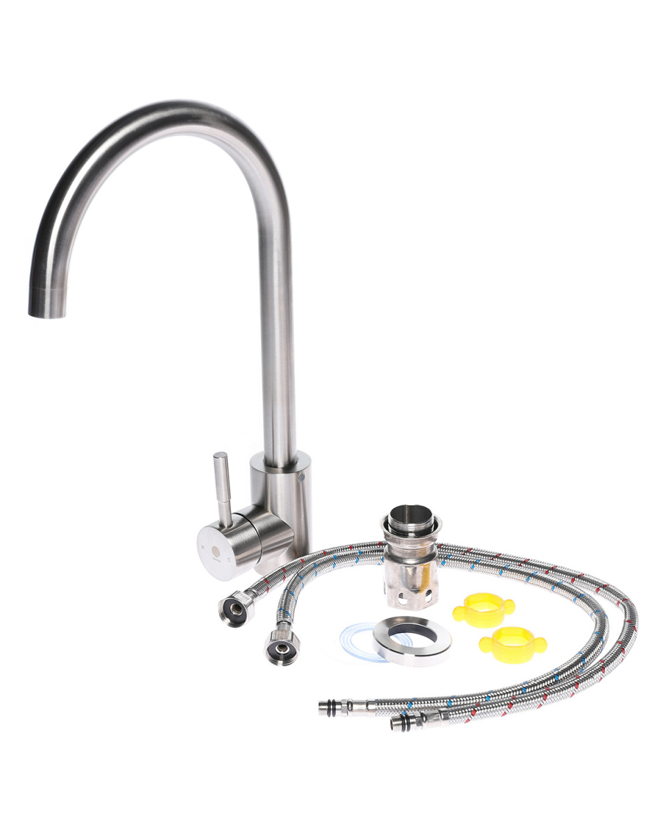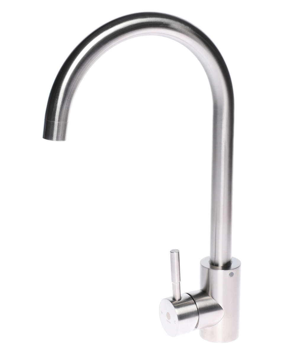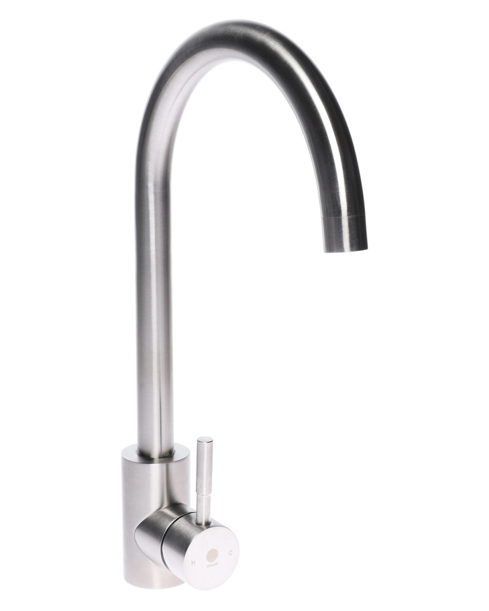 Однозахватный смеситель для кухни с поворотным изливом Orange Steel украсит современный интерьер. Благодаря фирменному картриджу Orange управление напором и температурой воды легкое и плавное. Корпус выполнен из нержавеющей стали, не подверженной коррозии от длительного контакта с водой. Износостойкое покрытие в цвете матовый никель нанесено по технологии вакуумного напыления (PVD), на нем незаметны разводы от высохшей воды и отпечатки пальцев. Встроенный аэратор экономит воду и, обогащая струю воздухом, делает её мягкой и без брызг.
