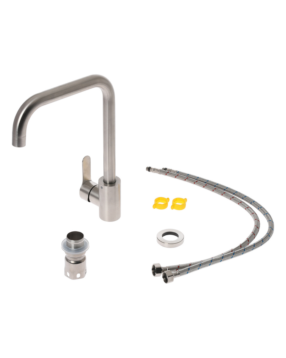 Однозахватный смеситель для кухни с поворотным изливом Orange Steel украсит современный интерьер. Благодаря фирменному картриджу Orange управление напором и температурой воды легкое и плавное. Корпус выполнен из нержавеющей стали, не подверженной коррозии от длительного контакта с водой. Износостойкое покрытие в цвете матовый никель нанесено по технологии вакуумного напыления (PVD), на нем незаметны разводы от высохшей воды и отпечатки пальцев. Встроенный аэратор экономит воду и, обогащая струю воздухом, делает её мягкой и без брызг.
