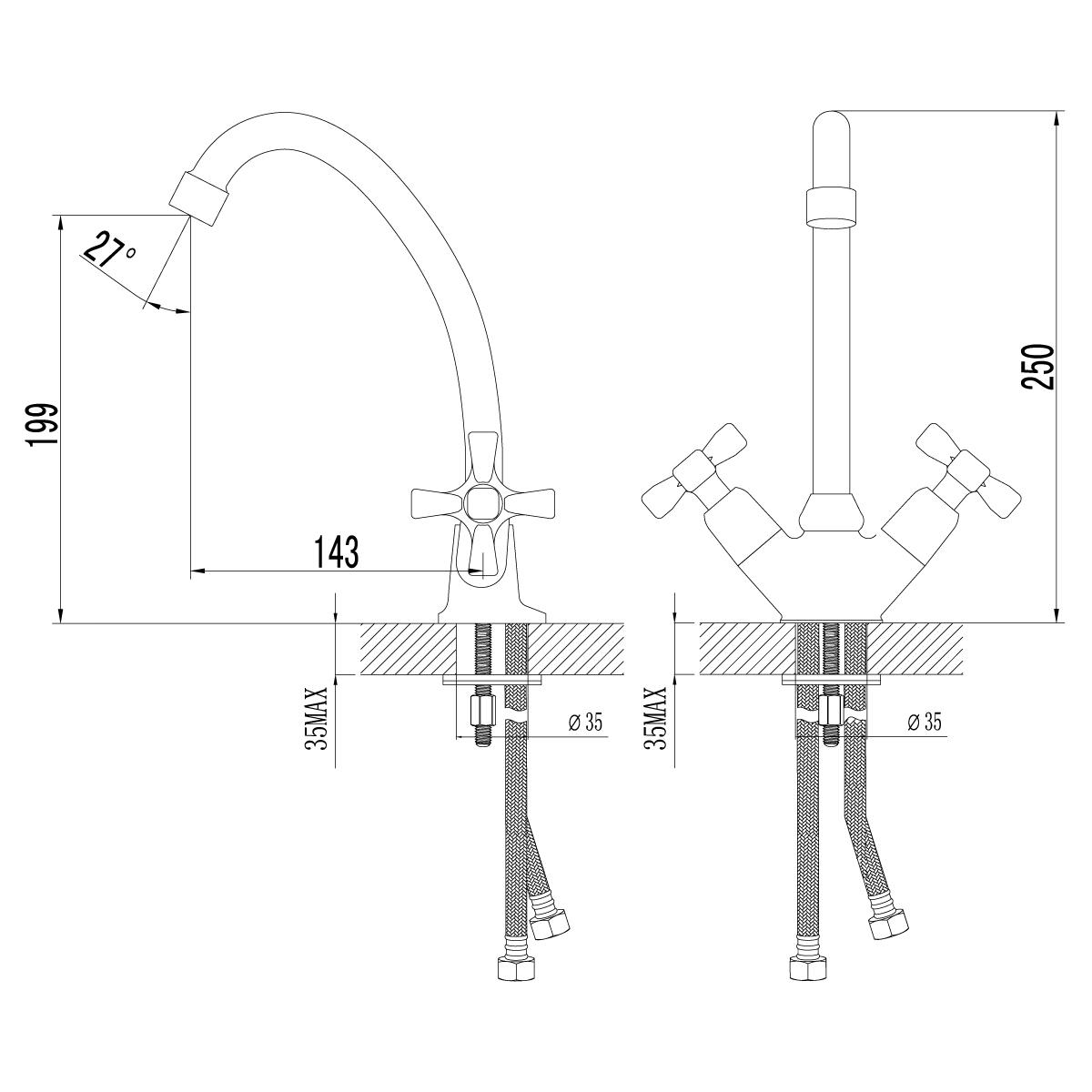 • Гибкая подводка 1/2" 35 см