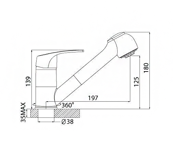 • 2-х функциональная излив-лейка с пластиковым аэратором и гибким шлангом 1,2 м