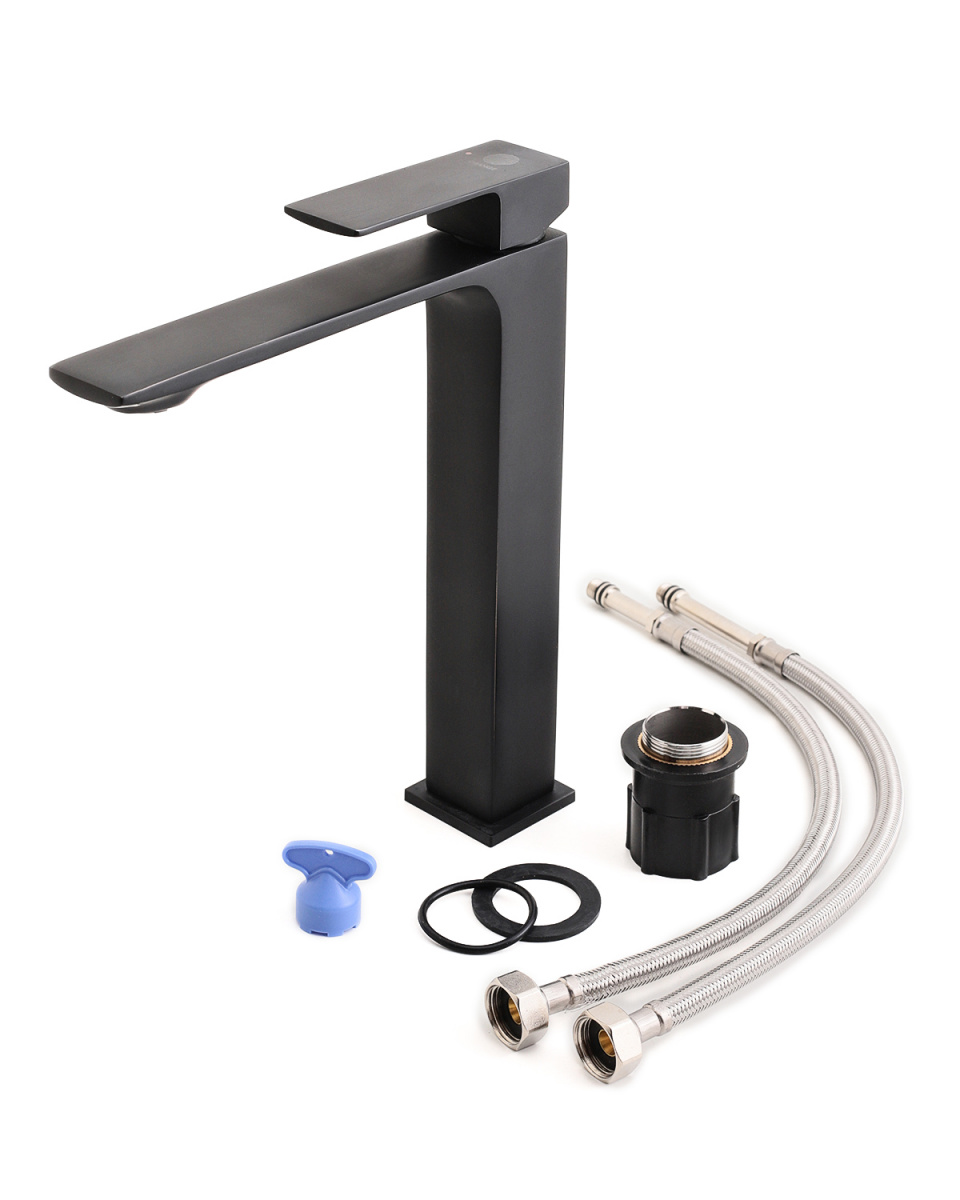 Однозахватный смеситель для раковины с фиксированным изливом Orange Lutz. Минималистический дизайн и тщательно продуманная функциональность объединены в смесителях коллекции Lutz. Высокая модель предназначена для использования с накладными раковинами. Изготовлен из латуни и не подвержен коррозии от постоянного контакта с водой. Фирменный картридж Orange делает лёгким управление напором и температурой воды. Покрытие в цвете матовый черный, за которым очень просто ухаживать мягкой салфеткой, нанесено методом порошковой окраски с многоступенчатой системой подготовки и высокотемпературной обработкой. Аэратор экономит воду и, обогащая струю воздухом, делает её мягкой, без брызг.