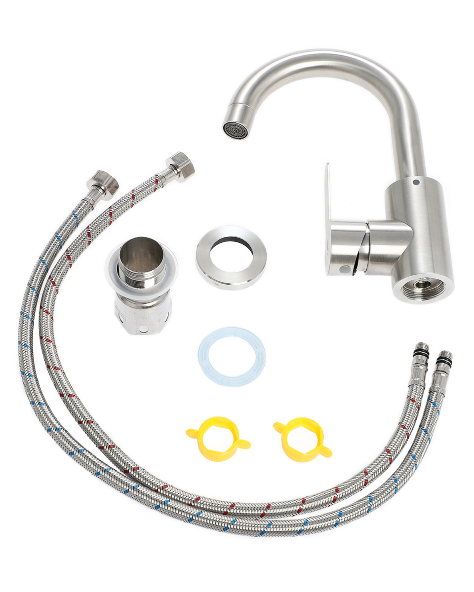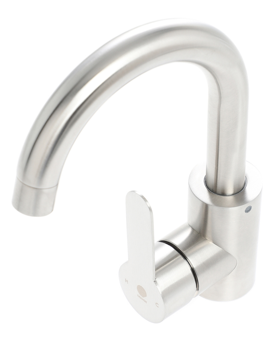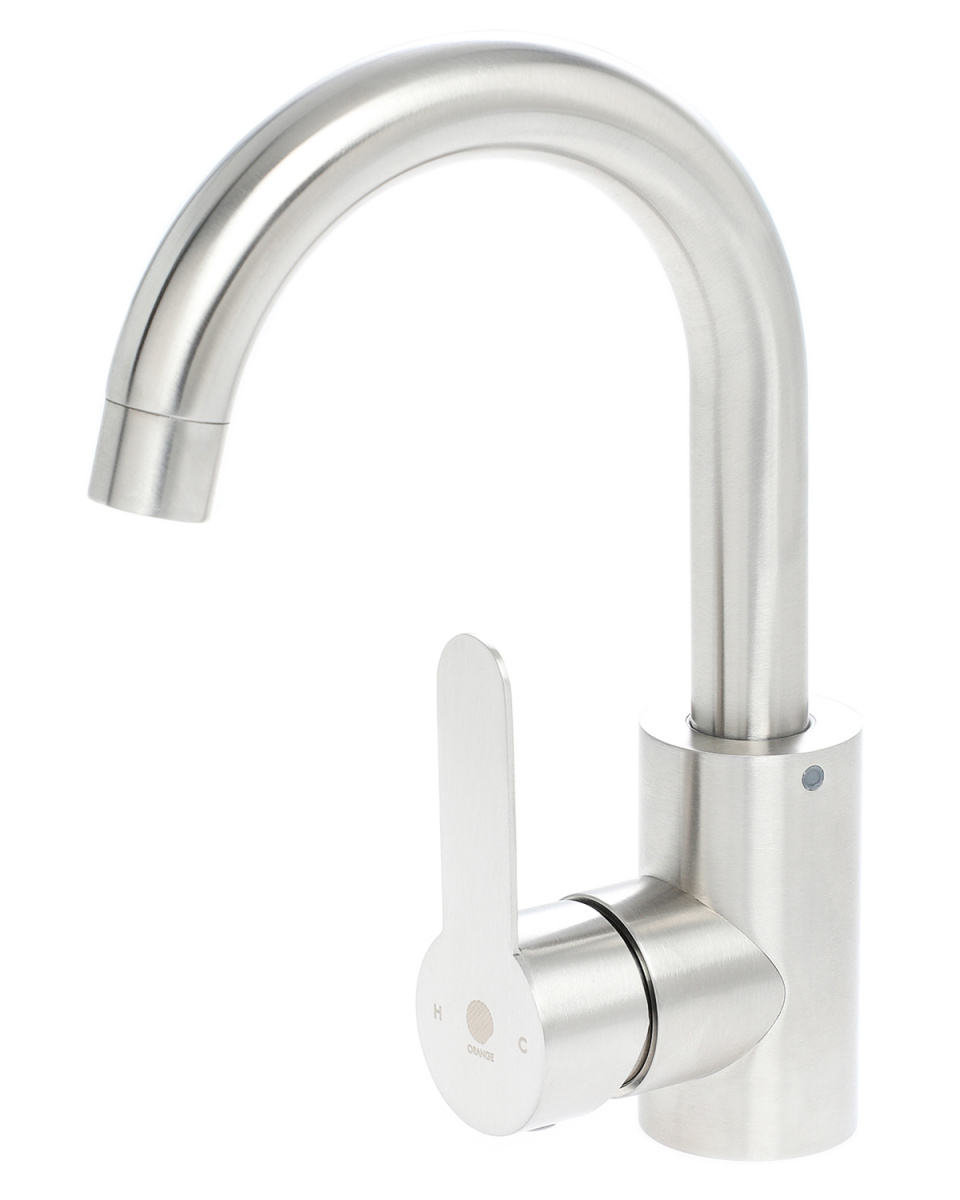 Однозахватный смеситель для раковины с поворотным изливом Orange Steel идеально впишется как в современный, так и в традиционный интерьер. Корпус выполнен из нержавеющей стали, не подверженной коррозии от длительного контакта с водой. Фирменный картридж Orange делает лёгким управление напором и температурой воды. Покрытие в цвете матовый никель, за которым очень просто ухаживать мягкой салфеткой, нанесено методом вакуумного напыления. Аэратор экономит воду и, обогащая струю воздухом, делает её мягкой, без брызг.