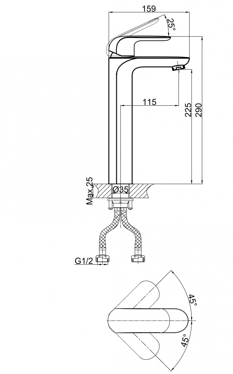 Смеситель для раковины высокий D&K Venice Gondola (DA1022018)