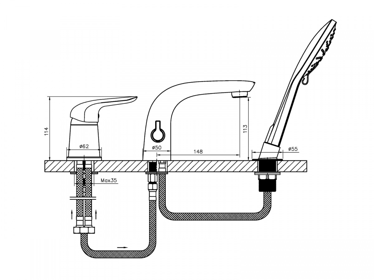 Смеситель для ванны/душа Agger A3333300 на борт ванны