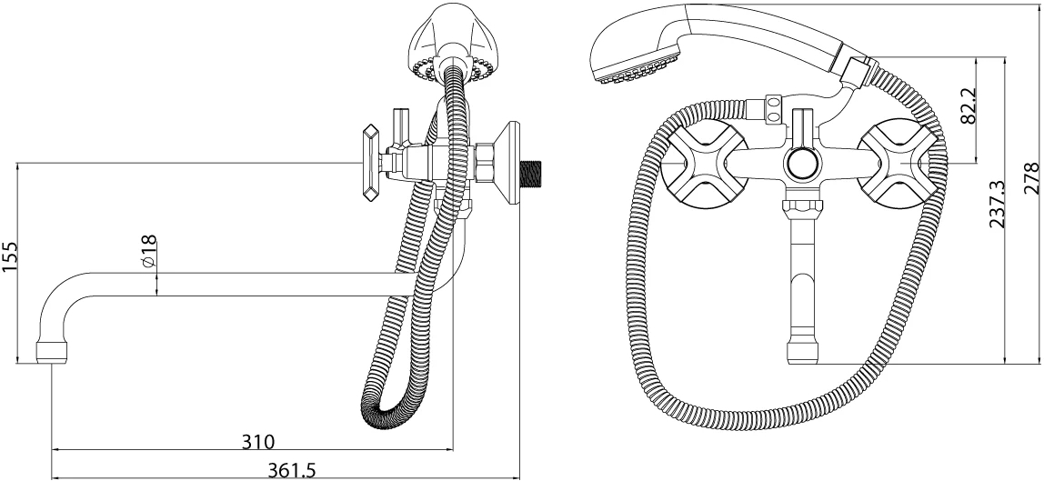 • Аксессуары в комплекте: шланг 1,5 м, 5-функциональная лейка Ø100 мм