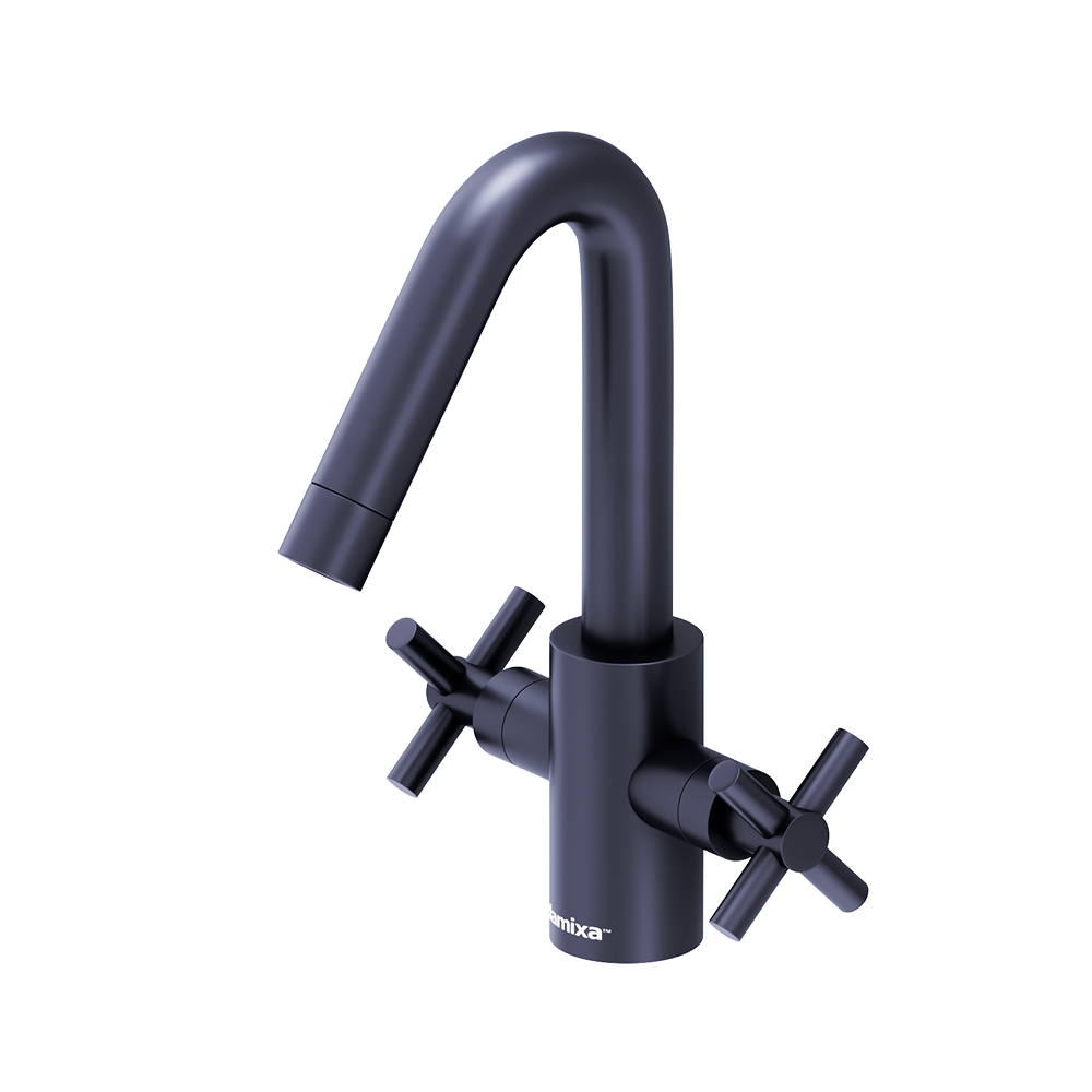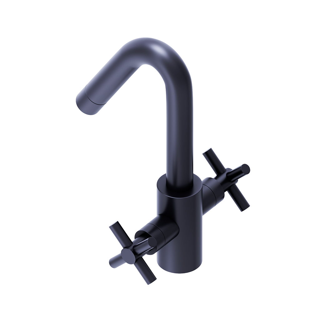 Сантехника как произведение искусства: утонченный излив оригинальные ручки крестообразной формы и тщательно сбалансированные пропорции.
