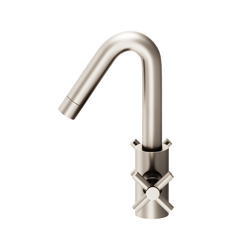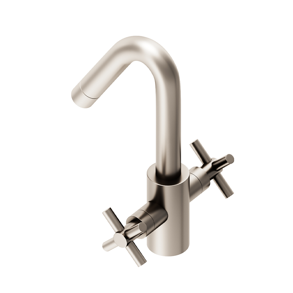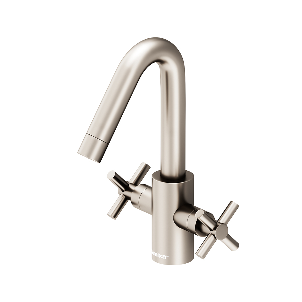 Сантехника как произведение искусства: утонченный излив оригинальные ручки крестообразной формы и тщательно сбалансированные пропорции. Глубина цвета: оттенок Nickel смотрится стильно и отлично сочетается с другими предметами интерьера. Уникальное покрытие: окрашивание смесителя выполнено по технологии Neo Matt - матовая поверхность с легким металлическим отблеском.