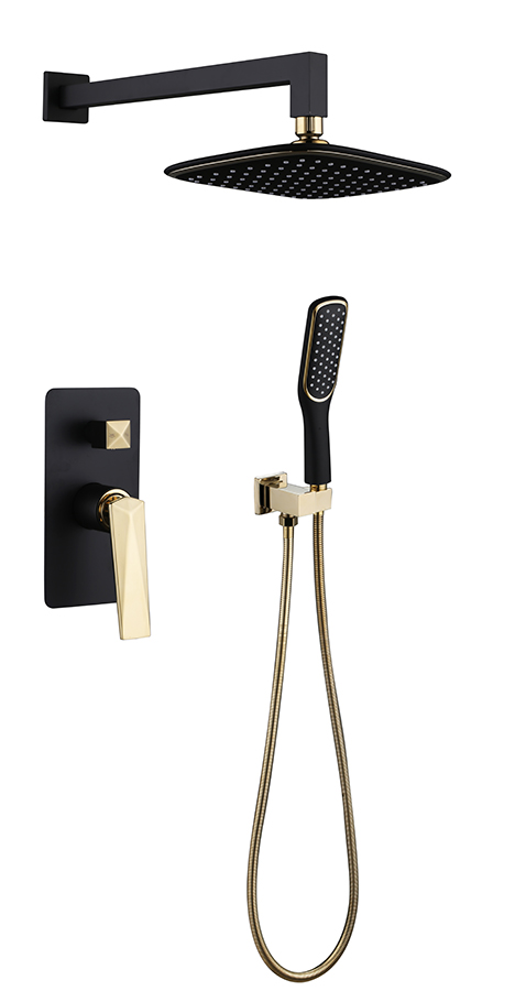 Смеситель встроенный + верхний душ + ручной душ ЧЕРНЫЙ+ЗОЛОТО