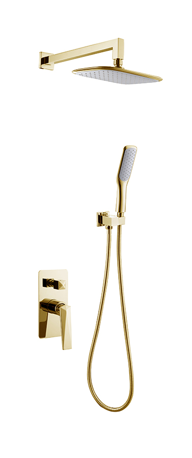 Смеситель встроенный + верхний душ + ручной душ ЗОЛОТО