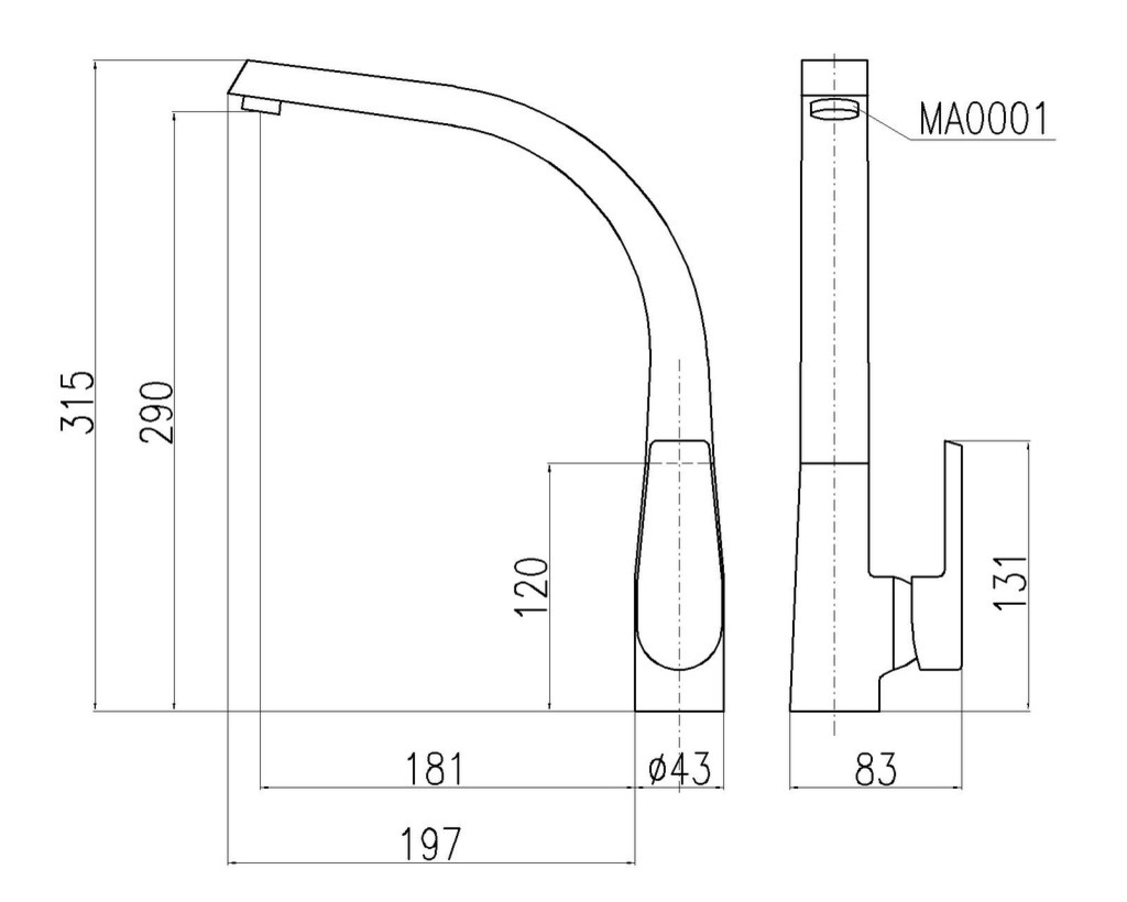 Монолитный, металлическая рукоятка,поворотный излив,высота излива 315мм, керамический катридж КА3502,KEROX, производство Венгрия, аэратор MA0001