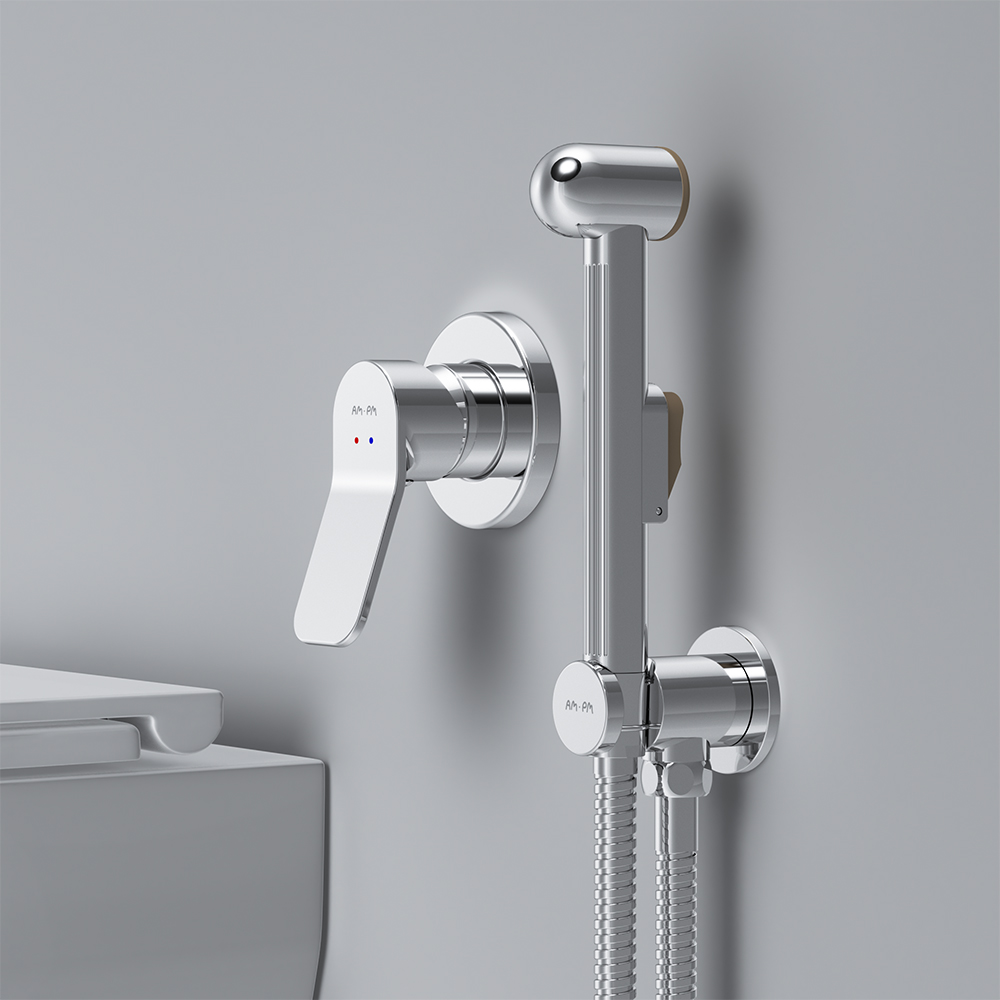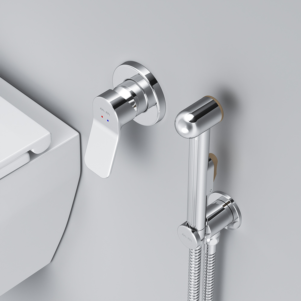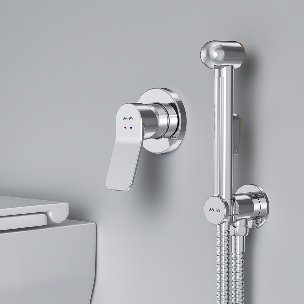 Готовое решение X-Joy включает в себя стильный смеситель для душа монтируемый в стену шланговое присоединение с боковым расположением держателя для гигиенической лейки гигиеническую лейку и душевой шланг длиной 1500 мм.