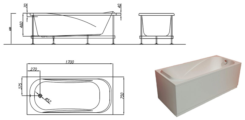 Комплектация BASIS (ванна + слив-перелив + каркас + индивидуальная упаковка) РАЗМЕР: 170 x 75 x 46 ( 63) Объем: 250 л