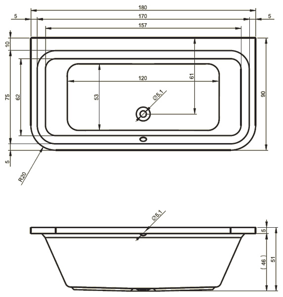 Ванна акриловая Lima 180 сифон с лево/ право