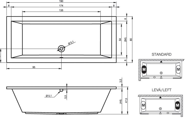 Ванна акриловая Lusso 190х80