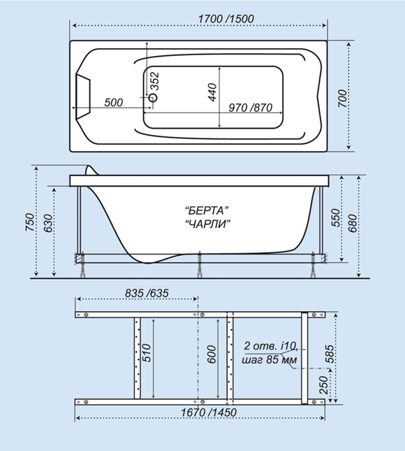 Акриловая ванна Тритон Берта (170x70) фото 3