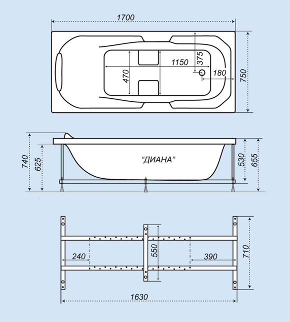 Акриловая ванна Тритон Диана (170х75) фото 4