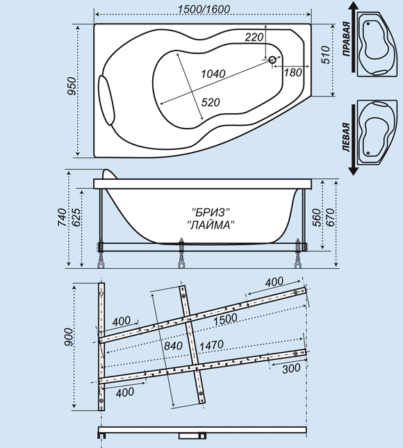 Акриловая ванна Тритон Лайма R/L (160x95)