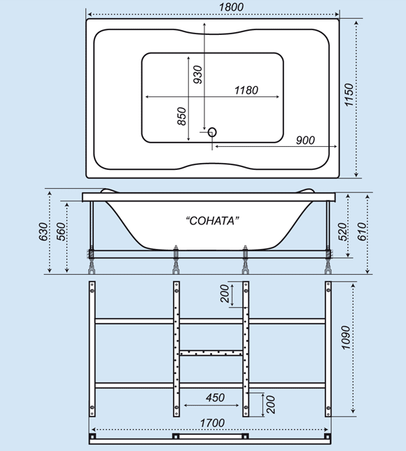 Акриловая ванна Тритон Соната (180х115)