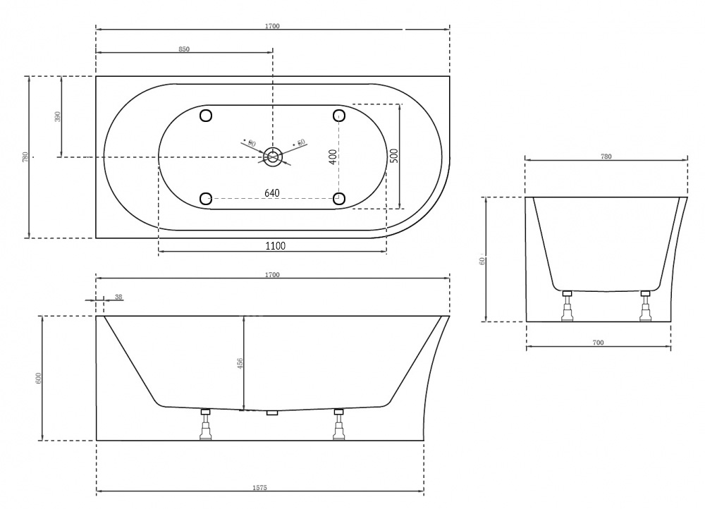 Акриловая ванна ABBER AB9257-1.7 L