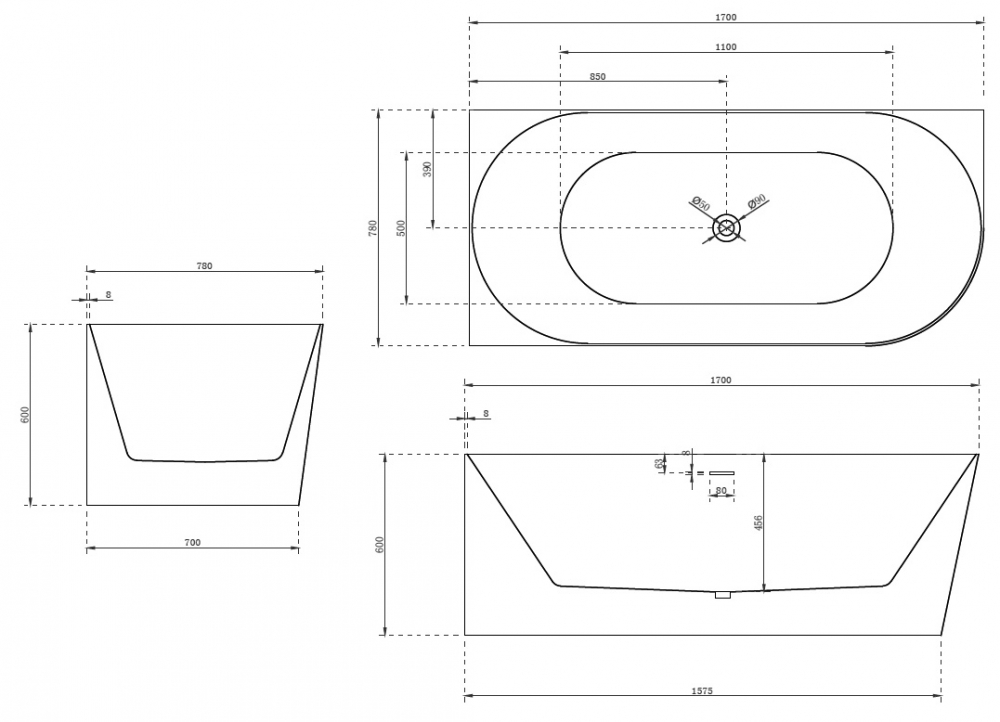 Акриловая ванна ABBER AB9258-1.7 L