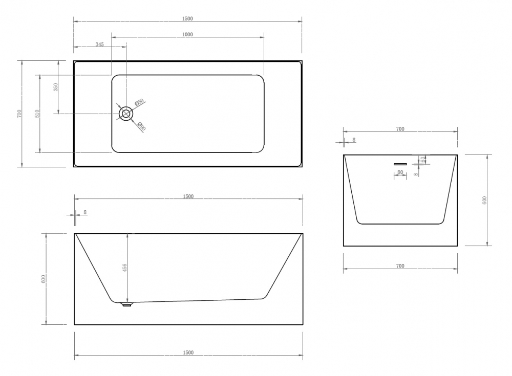 Акриловая ванна ABBER AB9274-1.5