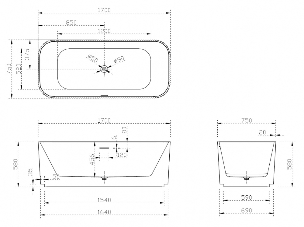 Акриловая ванна ABBER AB9363-1.7