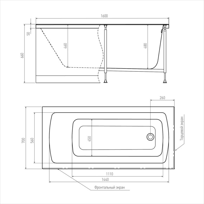 Акриловая ванна Alex Baitler Garda 160х70 пустая