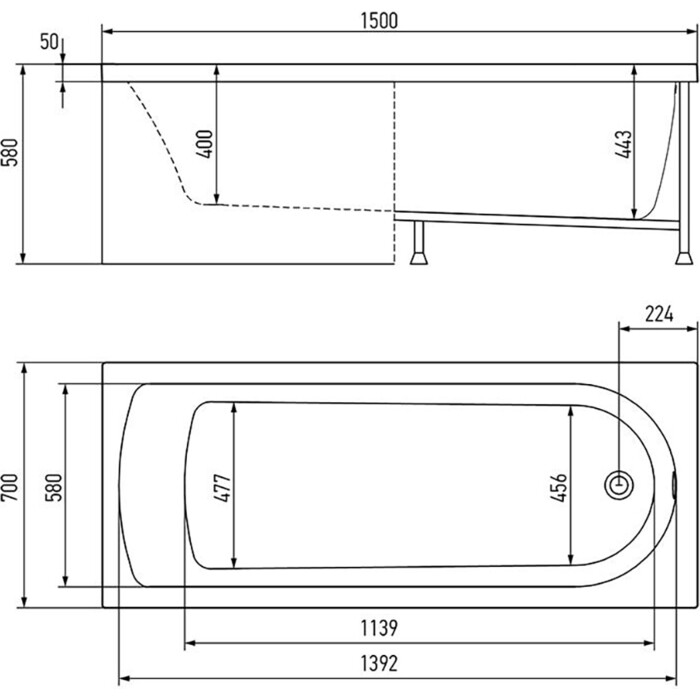Акриловая ванна Alex Baitler Michigan 150х70 пустая