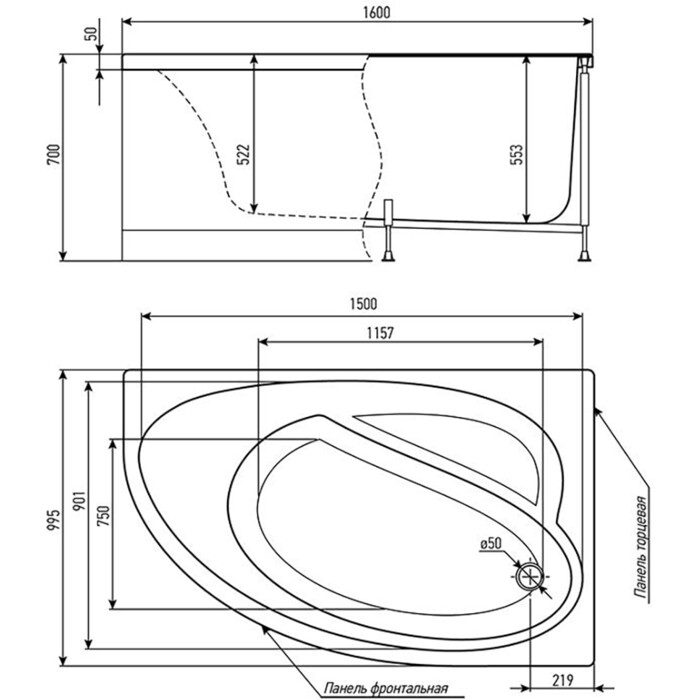 Глубина ванны: 54 см.