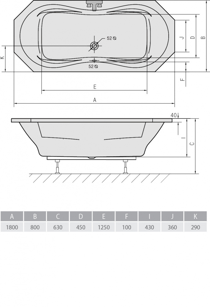 Акриловая ванна ALPEN Fuga 180