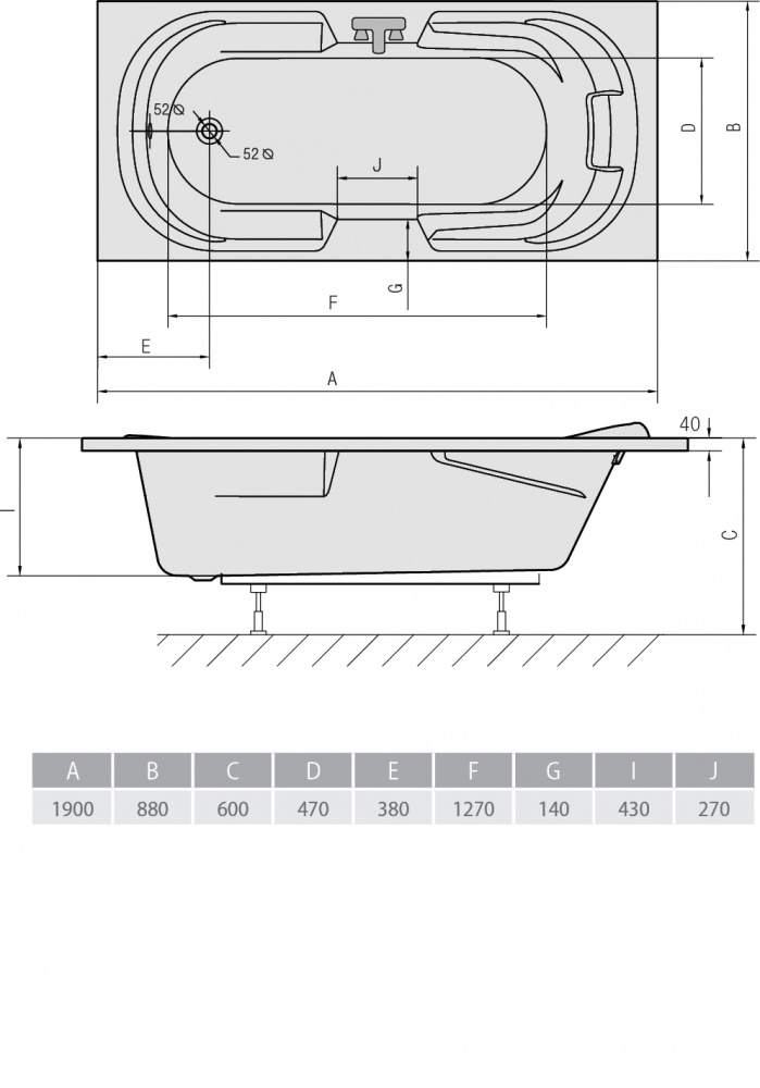 Акриловая ванна ALPEN Kaila 190