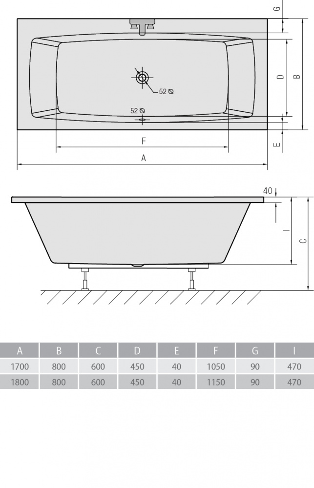 Размеры 170*80