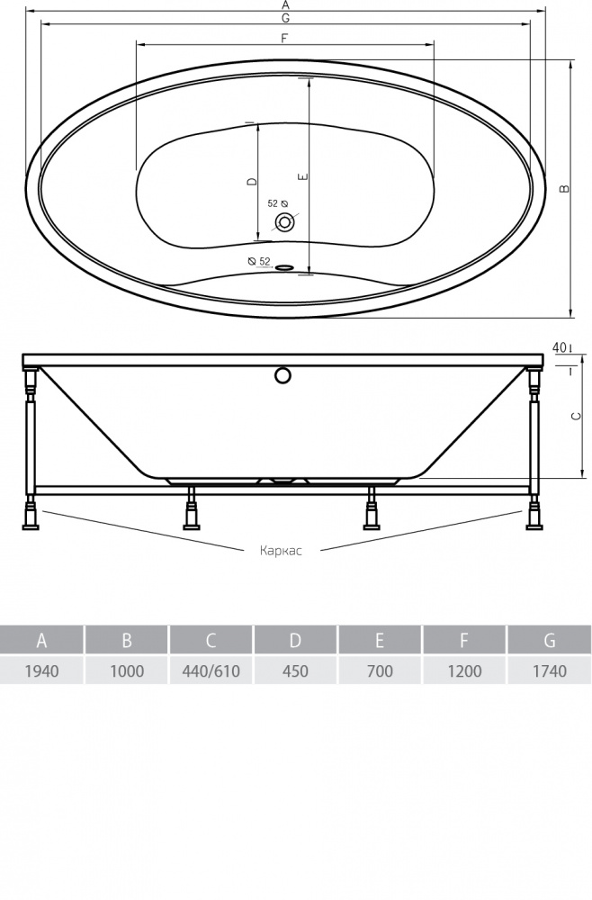 Размеры 194*100
