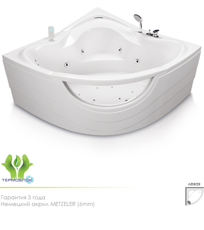 гидромассаж (сенсорное управление, 6 форсунок), аэромассаж (12 форсунок), спинной массаж (12 форсунок), кран Турбо, рама, слив-перелив