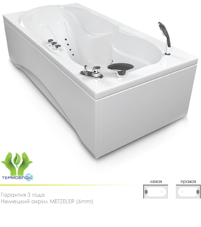 гидромассаж (сенсорное управление, 6 форсунок), аэромассаж (10 форсунок), спинной массаж (12 форсунок), кран Турбо, рама, слив-перелив