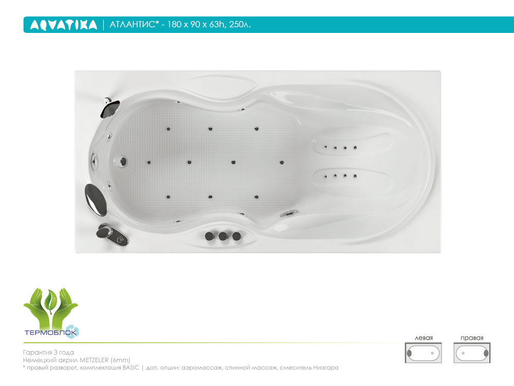 Акриловая ванна AQVATIKA Атлантис 180x90х63  фото 3