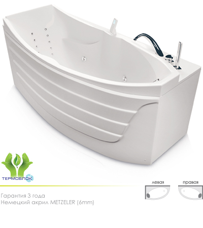 гидромассаж (сенсорное управление, 6 форсунок), аэромассаж (9 форсунок), спинной массаж (12 форсунок), кран Турбо, рама, слив-перелив