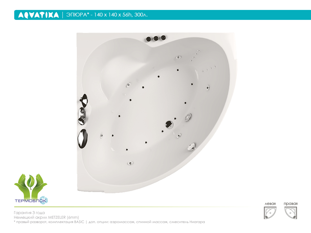 Акриловая ванна AQVATIKA Эпюра 140x140x56