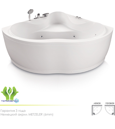 гидромассаж (сенсорное управление, 6 форсунок), аэромассаж (10 форсунок), спинной массаж (12 форсунок), кран Турбо, рама, слив-перелив.