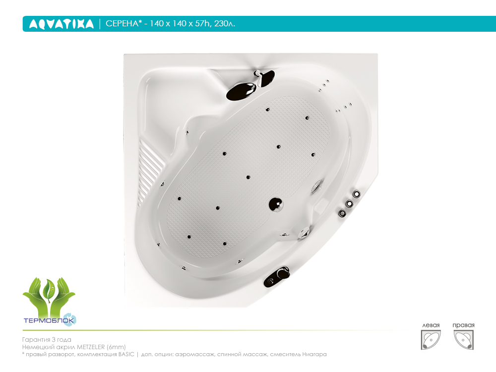 Акриловая ванна AQVATIKA Серена 140x140x57